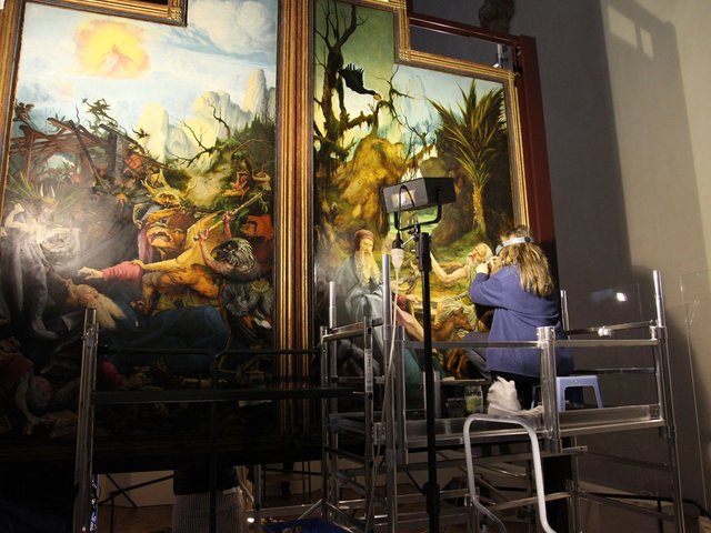 It took only six days in 2011 for two restorers with a cloth to strip the varnish off a painted panel depicting the Temptation of Saint Anthony and to revarnish it. They then started to repeat the process on half of Saint Anthony Visiting Saint Paul. Launched before a major expansion of the Unterlinden Museum in the Alsatian region of Colmar, where the altarpiece is housed, the work was not preceded by a scientific examination.