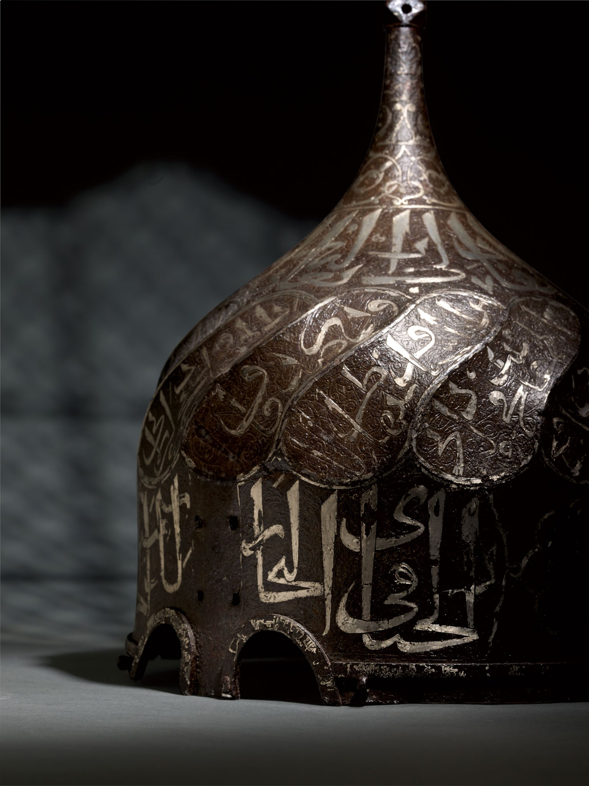 A 15th-century silver-inlaid Aqqoyunlu turban helmet from Turkey or Persia is estimated at £400,000-£600,000 © Sotheby's