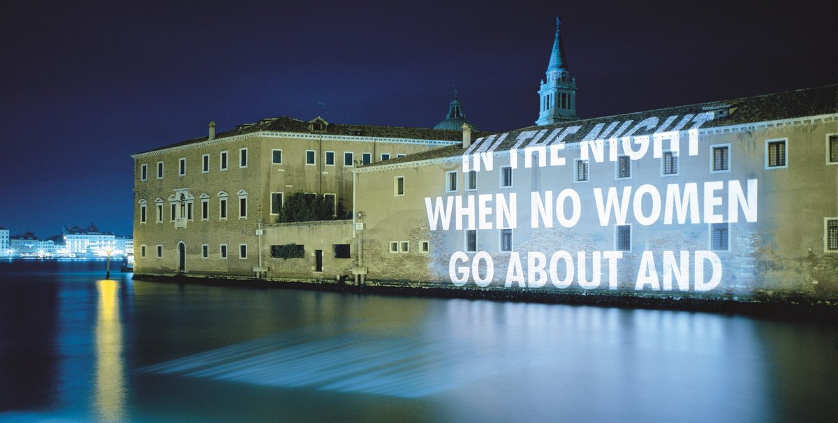 Earlier this year, Holzer’s New York City Aids Memorial, which incorporates a text piece by the artist, was unveiled in the West Village in New York. Meanwhile, a new permanent installation by Holzer, comprising three stone walls inscribed with ancient text, is due to go on show later this year at the Louvre Abu Dhabi on Saadiyat Island. She was the first woman to represent the US at the Venice Biennale in 1990.