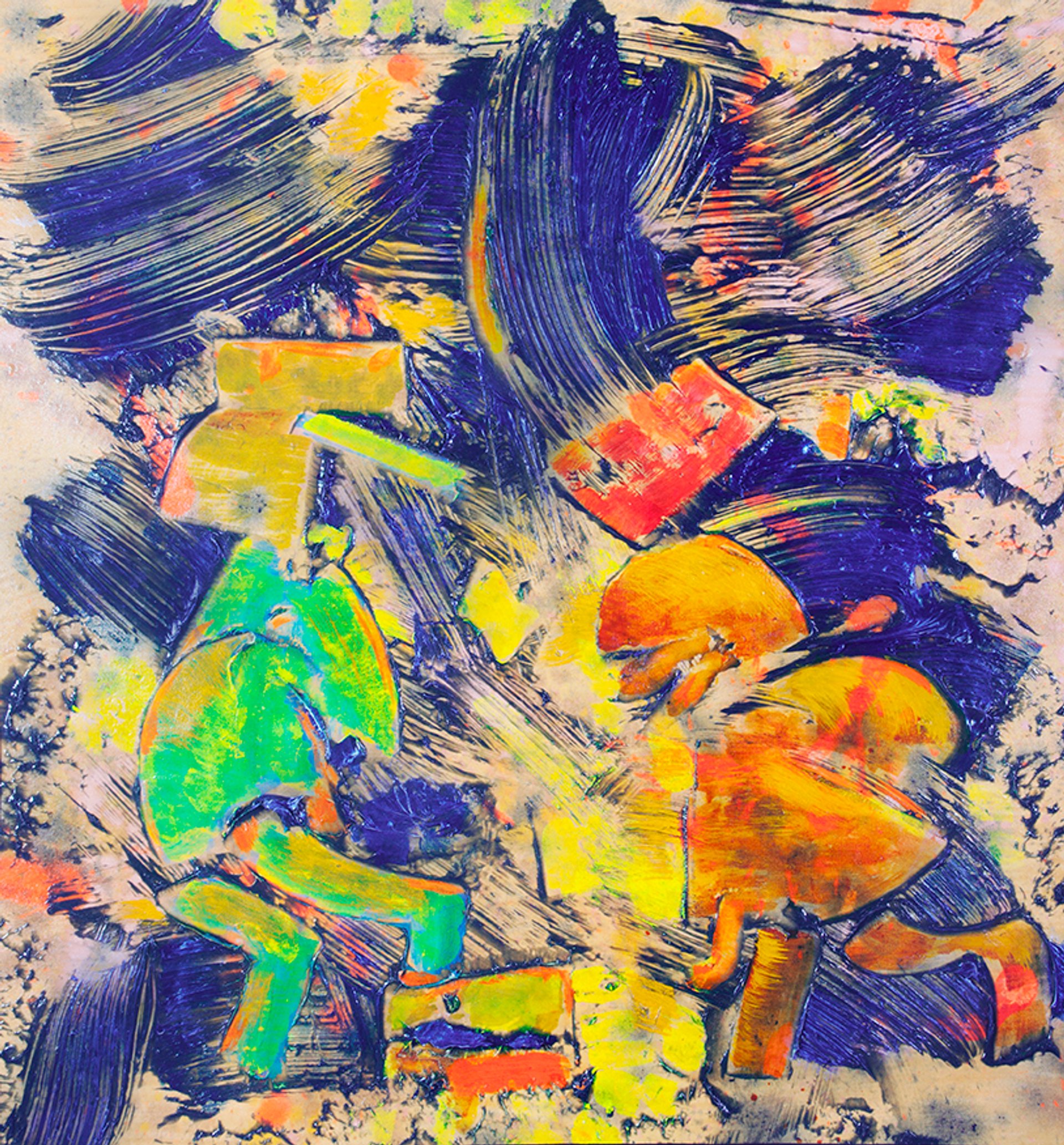 Miró’s concept of automatism as a means to experiment with materials and techniques, allowing the image to emerge from the process, anticipates the frontiers of serious painting today. Like Miró, the painters in this exhibition do not preconceive and depict shapes, but rather allow them to emerge from the process of creation. Describing his method of organising chance improvisation with stable structure, often combining linear looping and flat contoured shapes, Miró remarked, “The works must be conceived with fire in the soul but executed with clinical coolness.” He permits spills and blots to evoke pulsating forms. Miró’s paintings may look casual, but the disposition of elements is like in those of the Old Masters. He causes the eye to travel across the surface along axes and paths that visually link form to form. Miró challenged and threatened the Cubists: “I shall break their guitar.” And indeed, with his fearless experimentation, one might say that Miró certainly did.