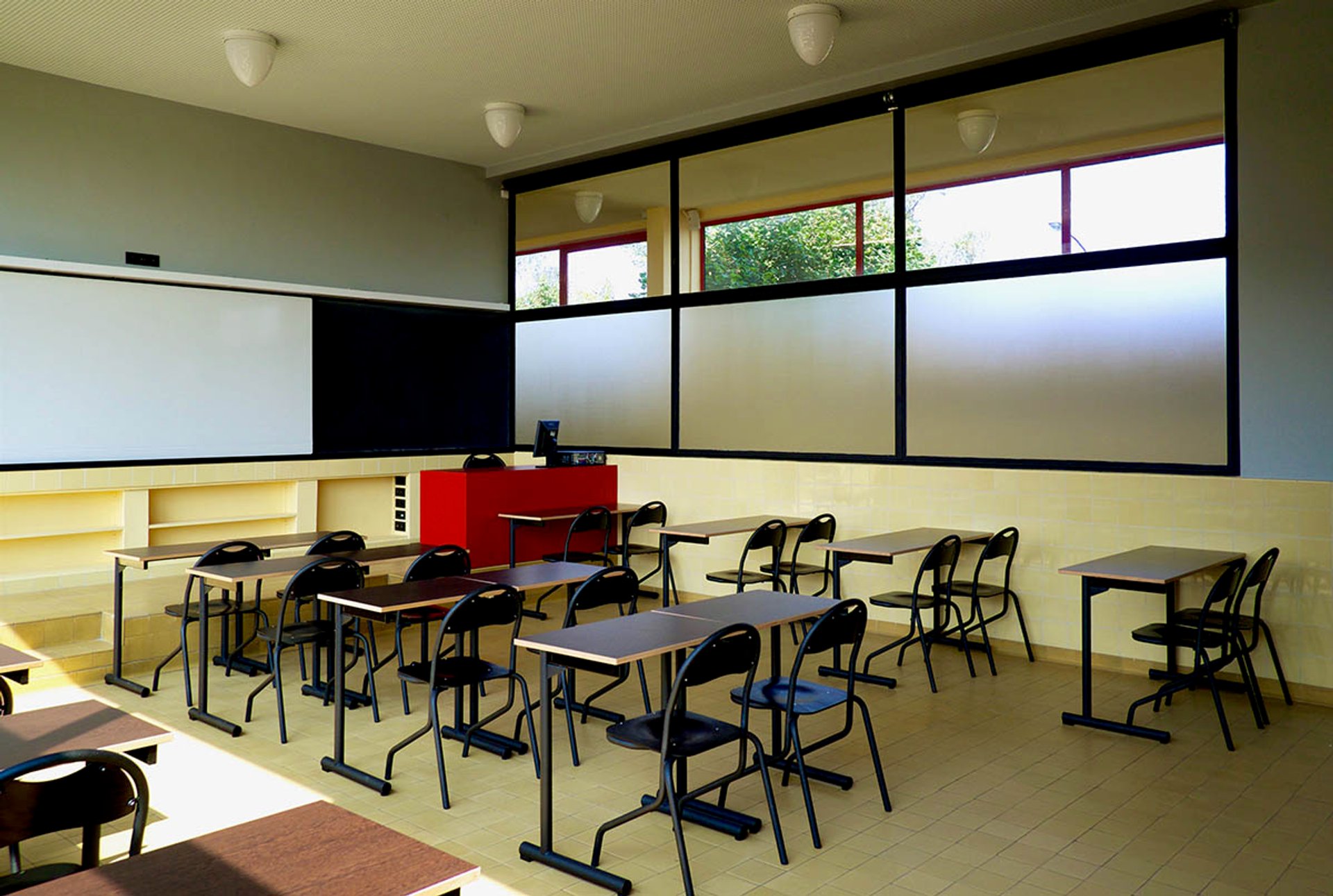 The building, designed and constructed in concrete by André Lurçat according to Modern functionalist principles, underwent a three-year restoration process overseen by the firm Agence Christiane Schmuckle-Mollard to repair exterior wall cracks, conserve interior ceramic sandstone tiles and reseal the windows, the organisation said. A new wing was also built to meet the needs of the school.