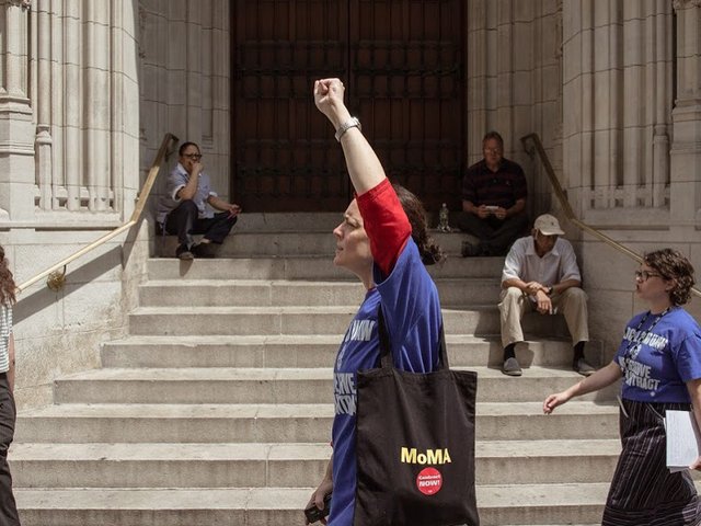 Chanting the phrase “Ancient Wages, Modern Art!” and singing the labour song Solidarity Forever, employees of the Museum of Modern Art (MoMA) in New York led a protest today (6 August), ahead of tomorrow’s union negotiations with the museum over a new contract. As reported by Artnews, protest began in the lobby and eventually around 100 employees gathered in a march around the block.
