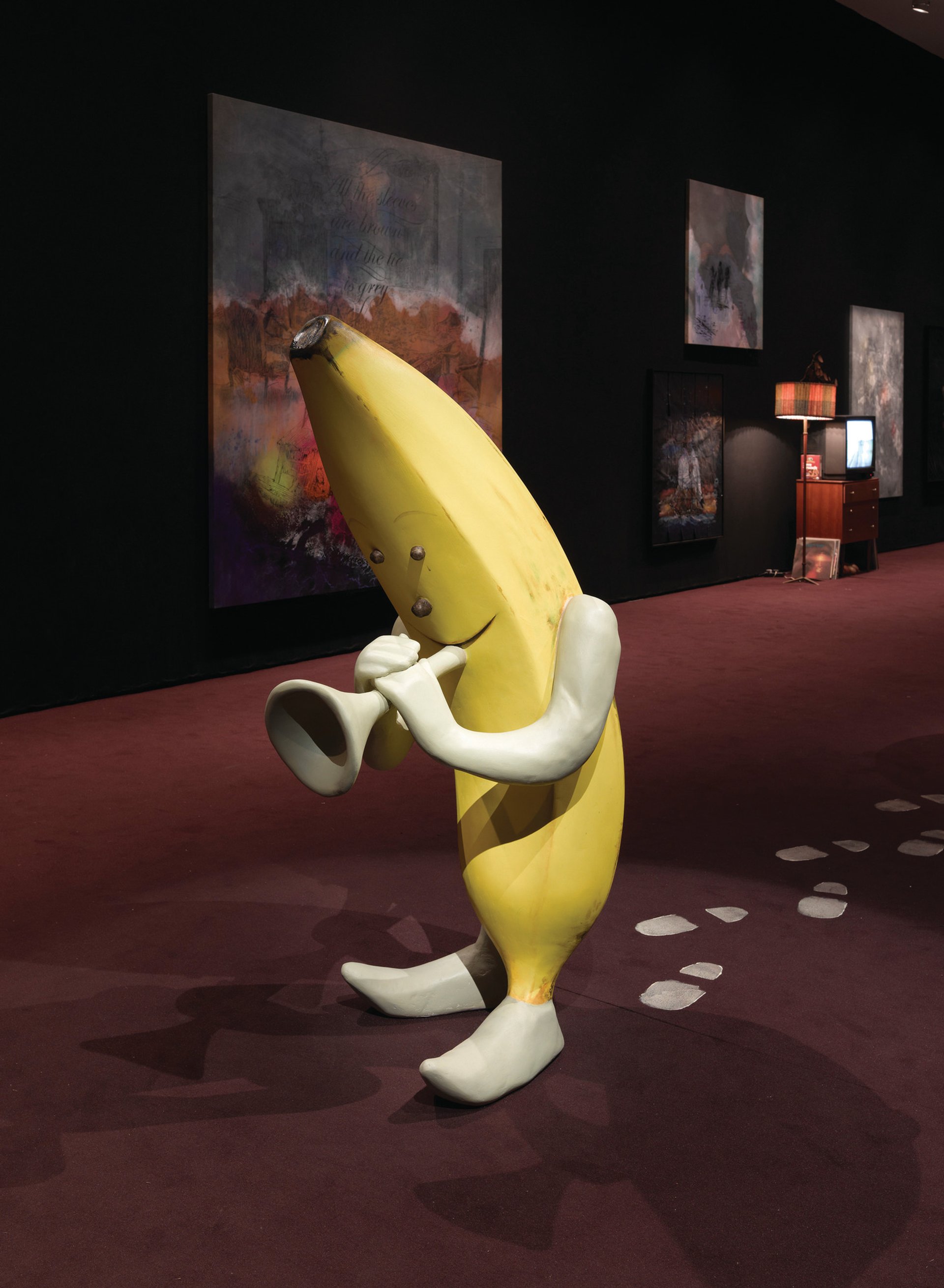 Other contemporary art purchases include Pop cartoon sculptures by fellow Japanese artist Yoshitomo Nara, pieces by the German artist Friedrich Kunath and Op-Art manipulations of the Japanese flag, such as the US artist Mark Grotjahn’s Untitled (Canary Yellow and Crimson Red Butterfly 823) (2008).
