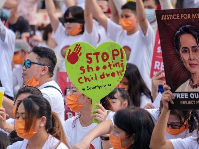 Waving the Hunger Games three-finger salute popularised last year during Thailand’s democracy movement, tens of thousands of people have protested nearly every day to demand Suu Kyi’s release and the return of civilian rule.