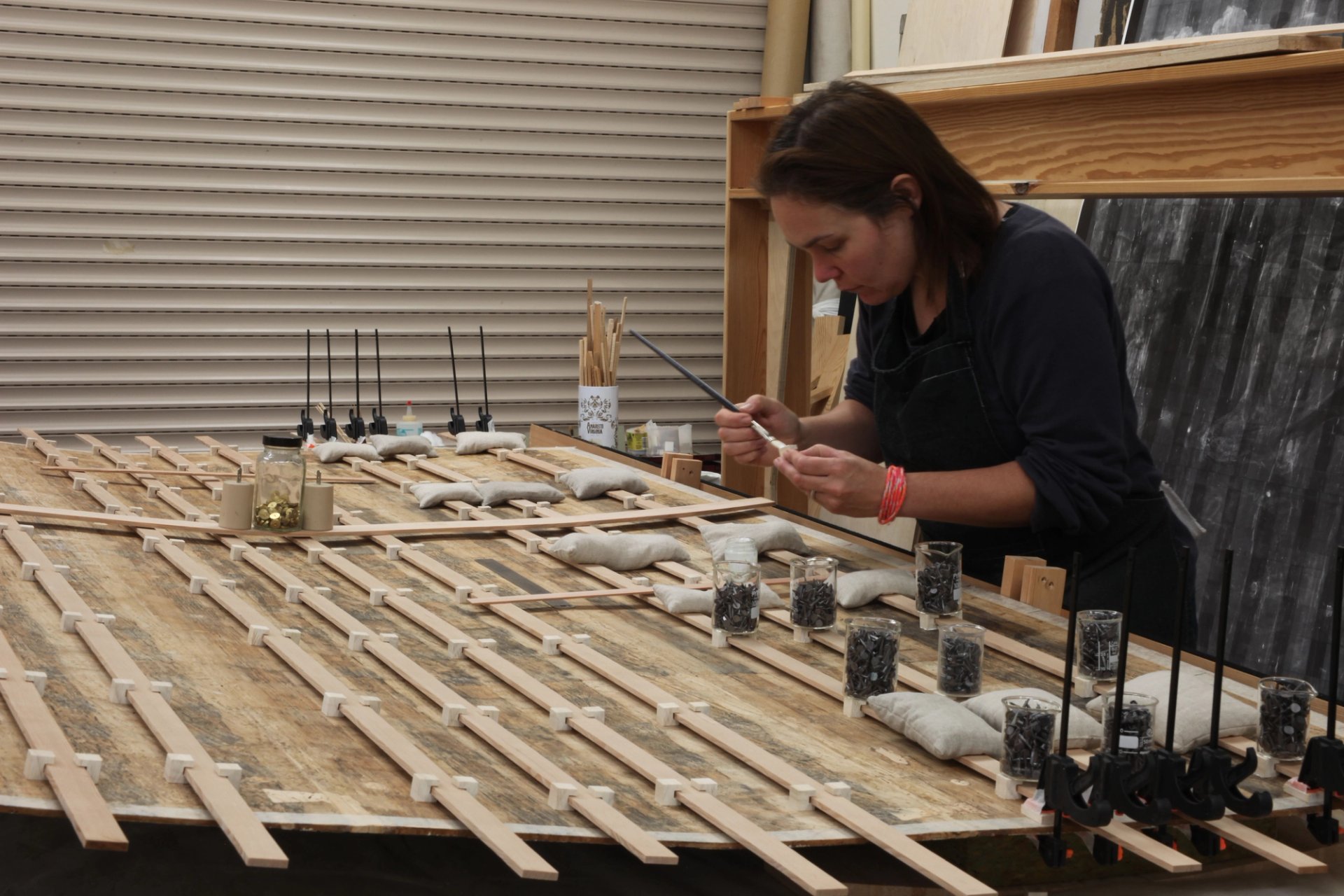 The different elements of the auxiliary support were positioned and the retaining blocks glued in place © The National Gallery, London