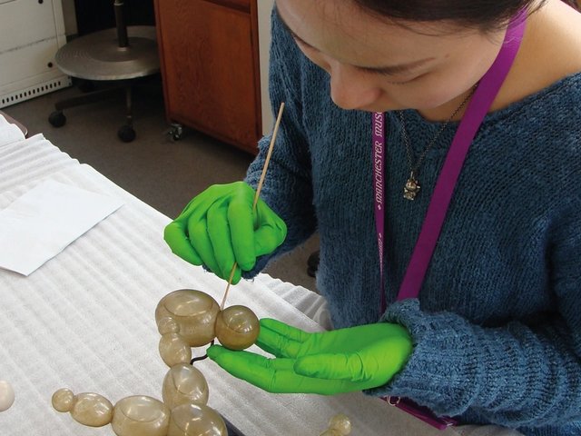 Around two-thirds of the 70 models selected for treatment required just a light cleaning, says Stephen Koob, the Corning’s chief conservator. Others were affected by structural instability and earlier interventions. To fill areas of loss, the museum developed a technique in which acrylic resin casts are made away from the object.