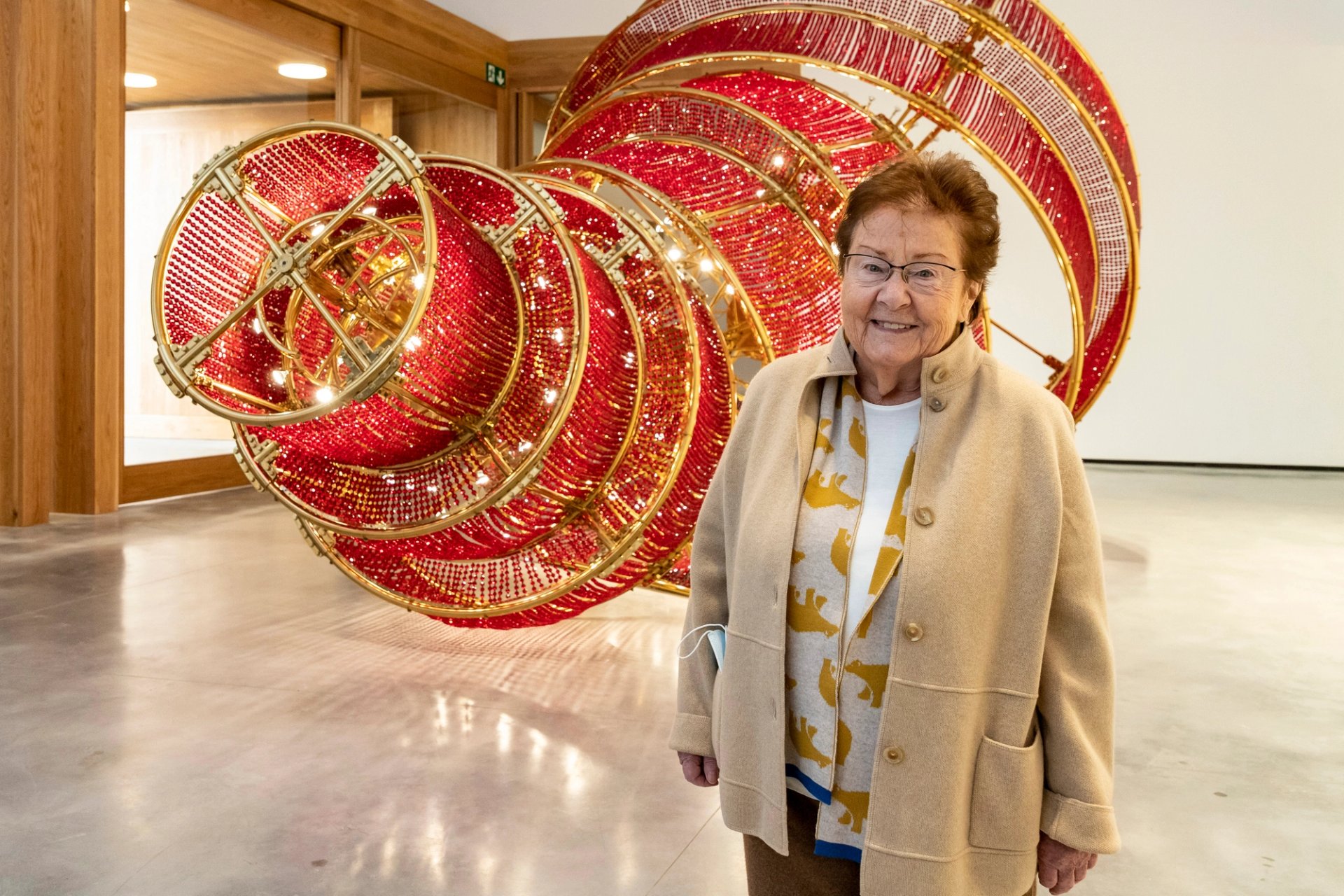 Helga de Alvear in front of Ai Weiwei's Descending Light (2007) Photo: Andy Solé