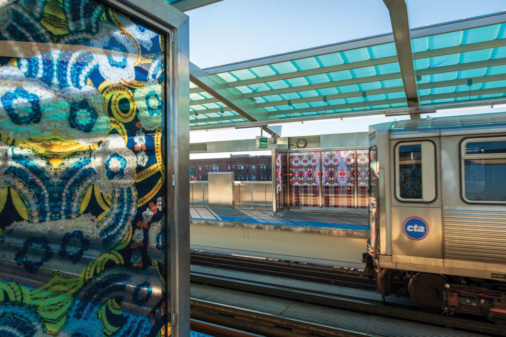 Nick Cave's artistic windbreaks on the platform of the Garfield Green Line station Photo: Patrick Pyszka, Courtesy of City of Chicago