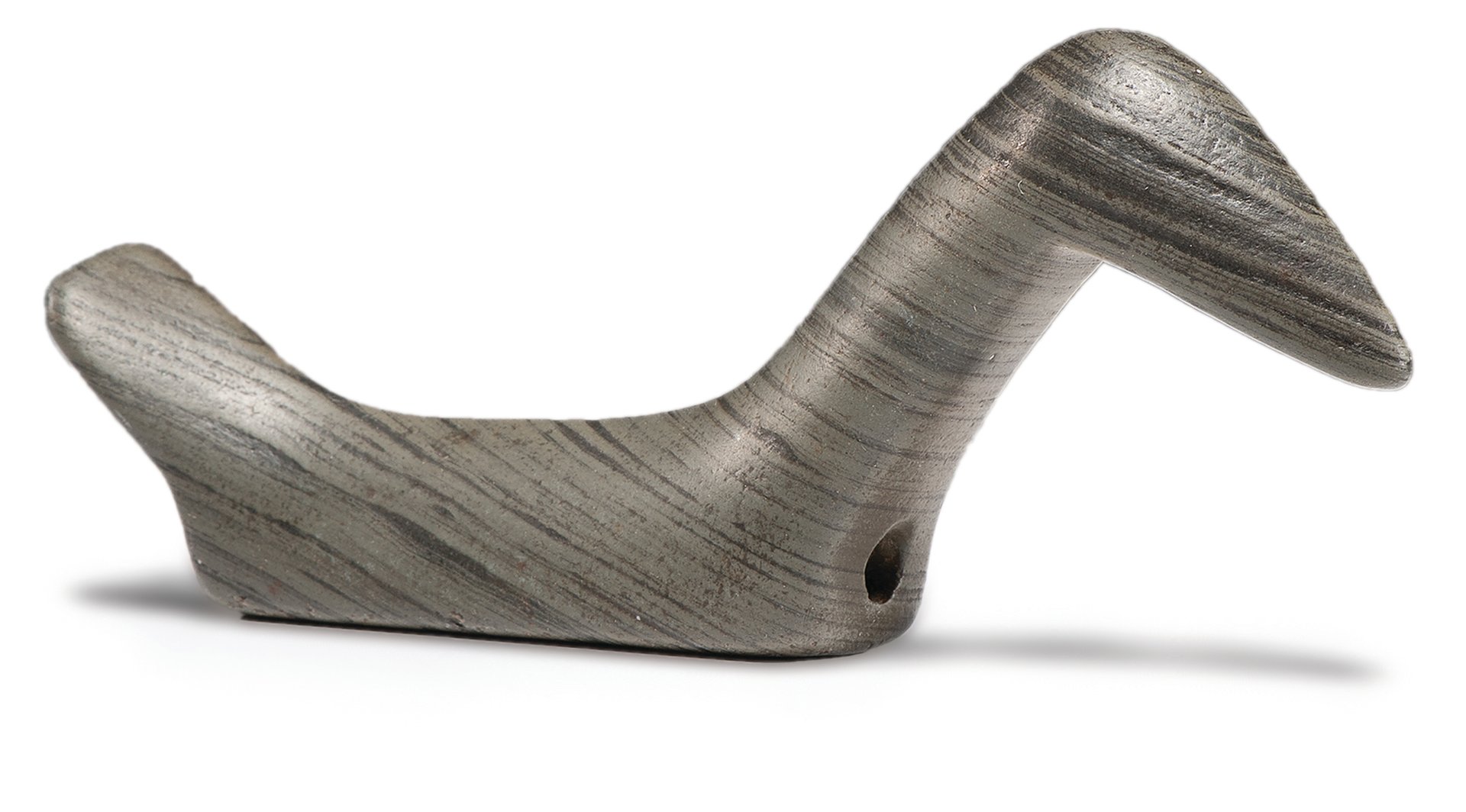 Elongated slate long neck birdstone found in Delaware County, Indiana (late Archaic period, 4000BC-1000BC)