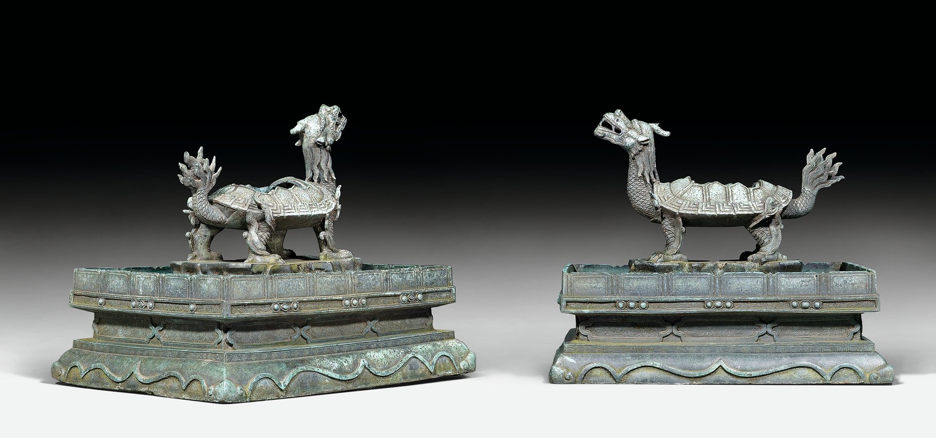 A pair of imperial bronze censers in the shape of dragon-turtles (bixi) (18th/19th century)