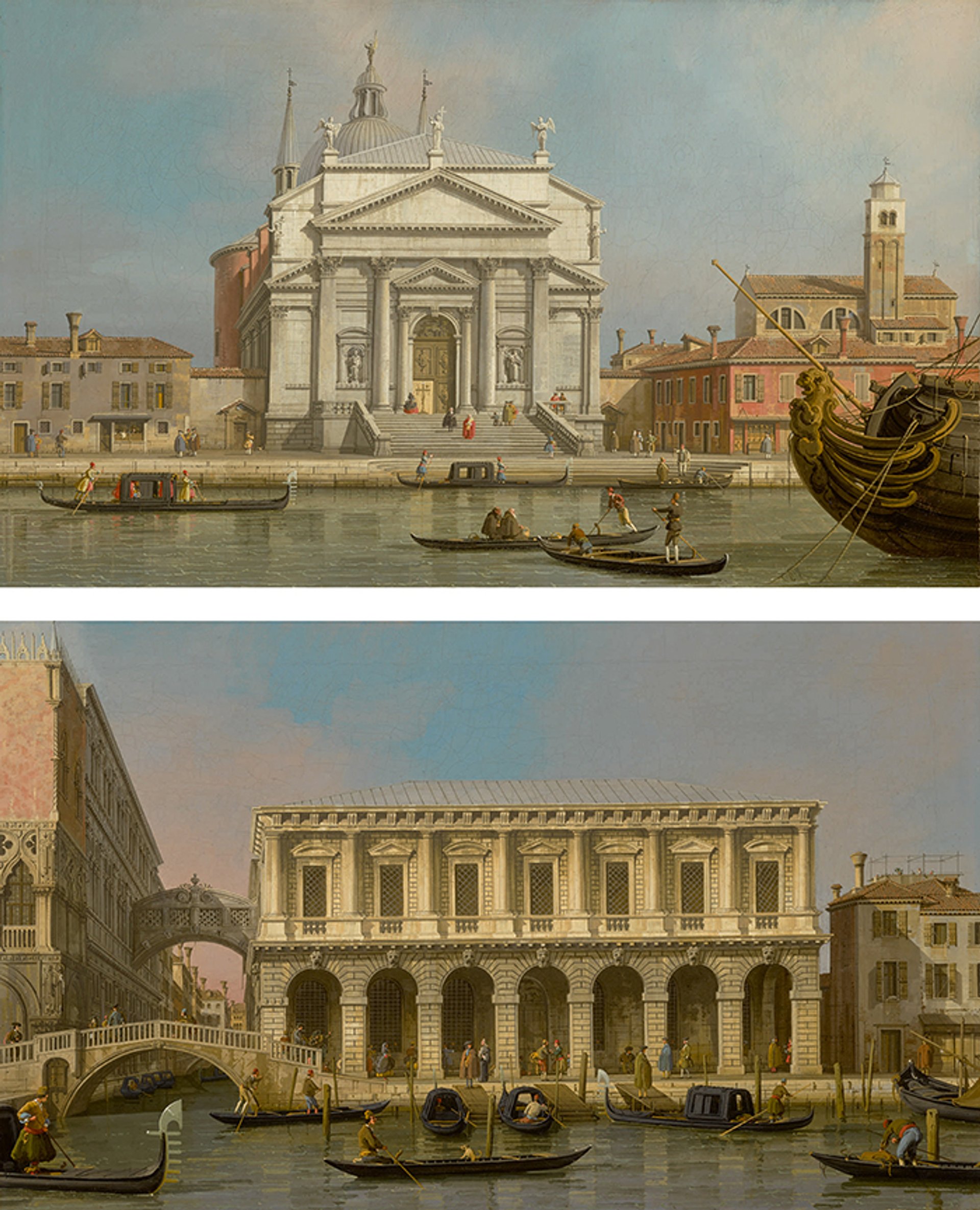 A pair of pristine works by Canaletto—The Churches Of The Redentore And San Giacomo and Venice, The Prisons And The Bridge Of Sighs, Looking Northwest From The Balcony—sold for $4.18m at Sotheby's Courtesy of Sotheby's