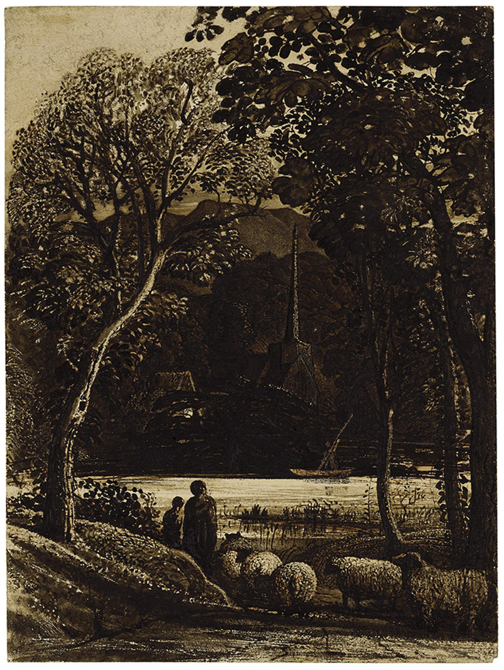 Samuel Palmer's ink drawing A Church With A Boat And Sheep (circa 1831), from the Howard and Saretta Barnet collection, achieved $2.4m Courtesy of Sotheby's