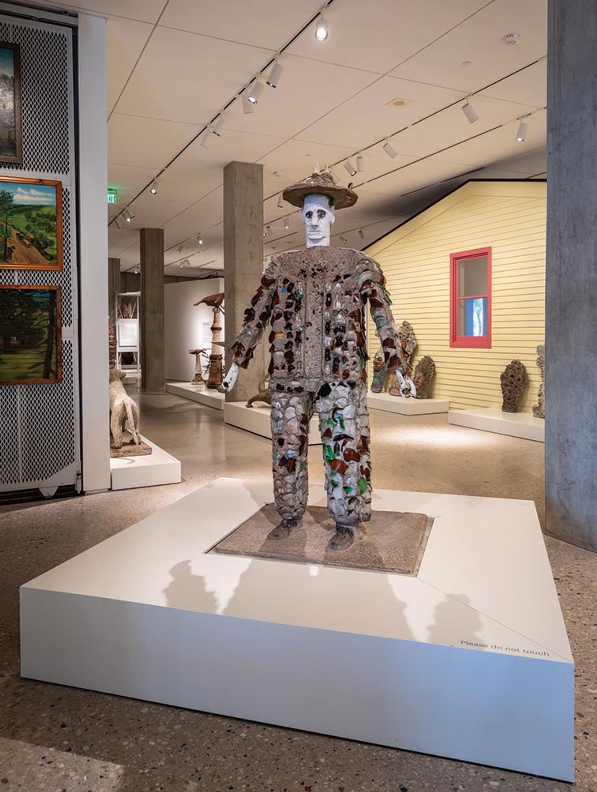 Similar to site-specific art installations, art environments are meant to be experienced in situ but are generally created without institutional support or context. Associated with folk and outsider art, they are often built out of found material and located within an artist’s home or on the creator’s property. “They are life-specific as opposed to site-specific,” says the museum’s associate curator, Laura Bickford. For example, from 1948 to 1976, the homesteader Fred Smith created some 230 concrete sculptures embellished with salvaged beer bottles and other objects on his farm and around his tavern in Phillips, Wisconsin.