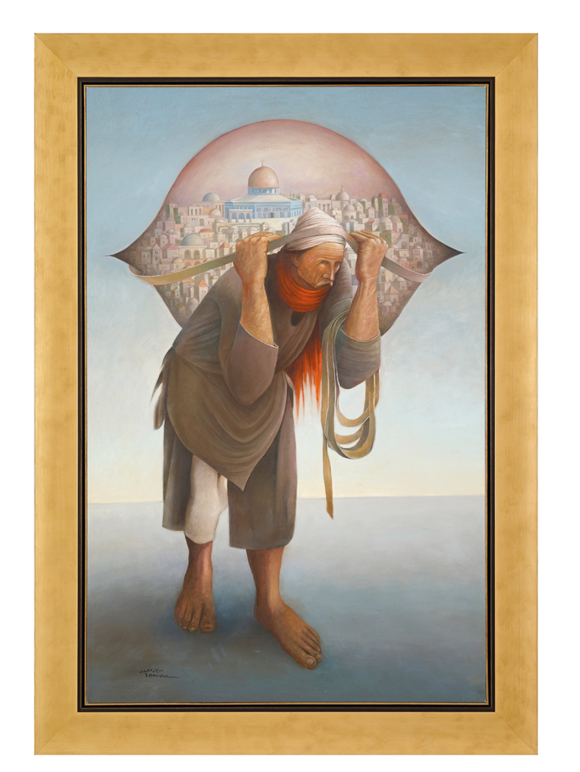 This is one of the best-known paintings in Palestine, and arguably in the Middle East. With a title meaning “the camel” or “carrier of hardships”, the work is a larger version of the 1975 work that belonged to the Libyan leader Muammar Gaddafi, thought to have been destroyed in the 1986 US bombing of Tripoli. The Dalloul foundation purchased it from Christie’s Dubai in 2015 for $257,000.