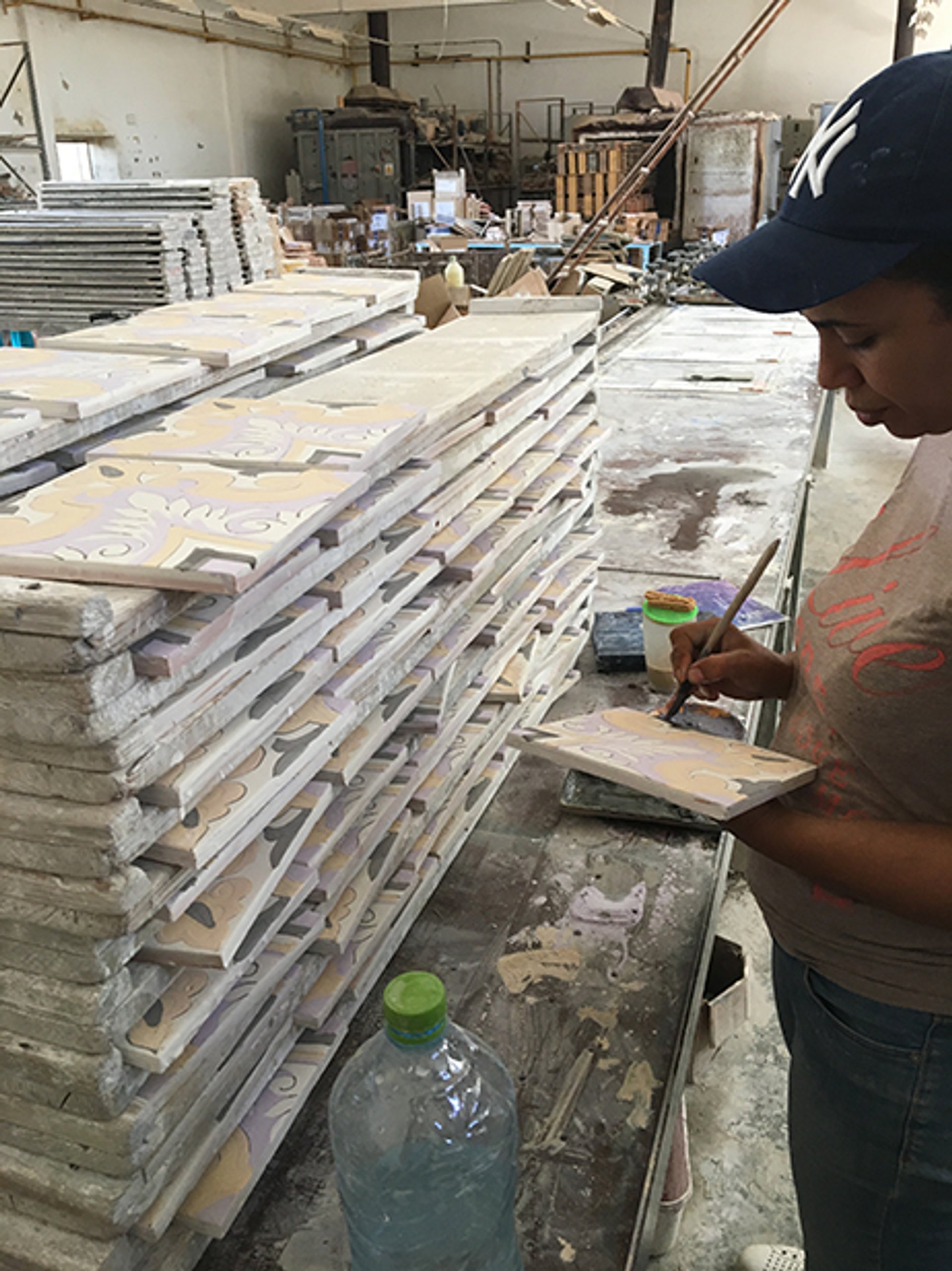 Tiles being hand painted for Jardin Afrique Courtesy Rachid Koraichi