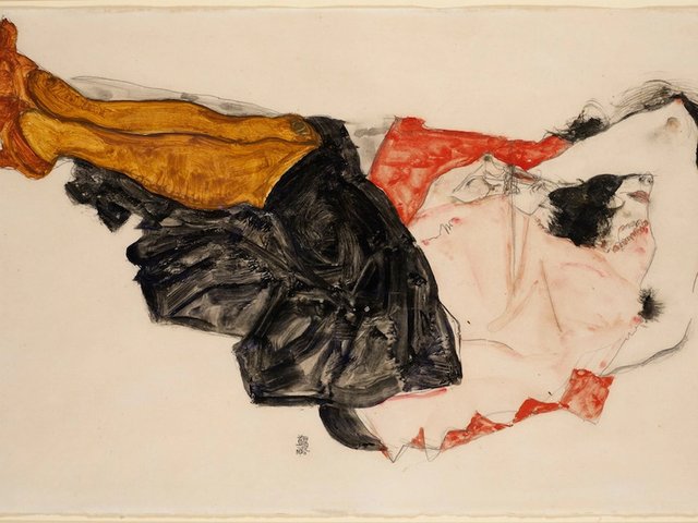 Woman in a Black Pinafore (1911) and Woman Hiding Her Face (1912)—together valued at around $5m—had previously been in the collection of the cabaret artist Fritz Grünbaum (1990-1941), who was arrested by the Nazis in 1938 and sent to Dachau concentration camp, where he died in 1941. After his arrest, power of attorney had passed to his wife, Elisabeth, who was forced to sign over his art collection (consisting of over 500 works, including at least 81 by Schiele) to be inventoried after she was forced from their apartment. Elisabeth also died in a camp, in 1942.