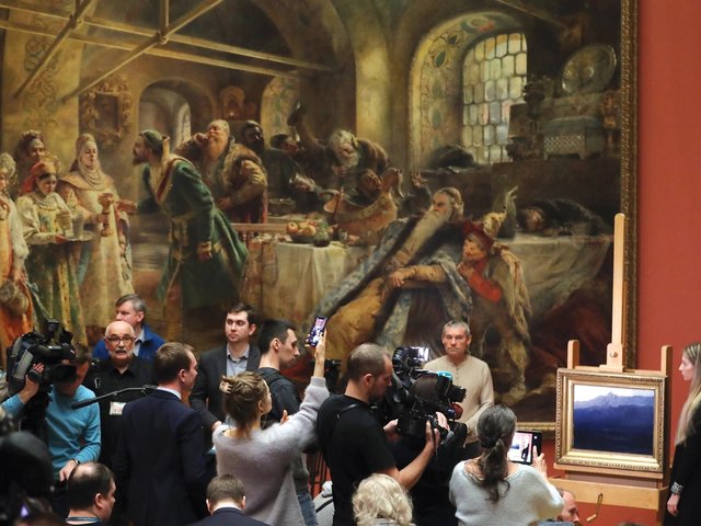 Another video taken by a museum visitor showed the man walking nonchalantly through the displays of Russian art at the Tretyakov’s main building in Lavrushinsky Pereulok, his back was covered in red runic symbols. The scene is reminiscent of the theft on 27 January of a painting taken directly off the museum’s wall.