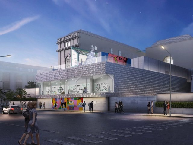 Charanjiva’s 318 sq ft rooftop mural Don’t Mess With Me (2020) re-stages the bright pink work the street artist has pasted around her city of Mumbai: a defiant, comic hero-like woman in traditional Indian bridal dress—with brass knuckles reading “Boom”—made in response to the fatal 2012 gang-rape of a Delhi student. Both commissions are due to be unveiled this month, fortuitously visible to passersby, as the opening of the revamped spaces has been twice pushed back due to Covid-19 and is now expected in early autumn.
