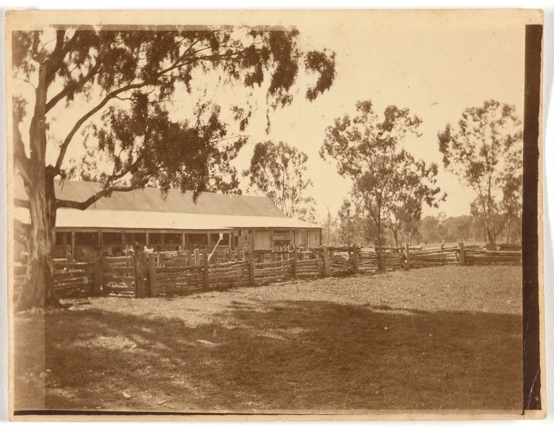 A photograph attributed to Tom Roberts that shows Brocklesby Station's shearing shed in Corowa (around 1890). The shed burned down in about 1960 Courtesy of National Gallery of Victoria
