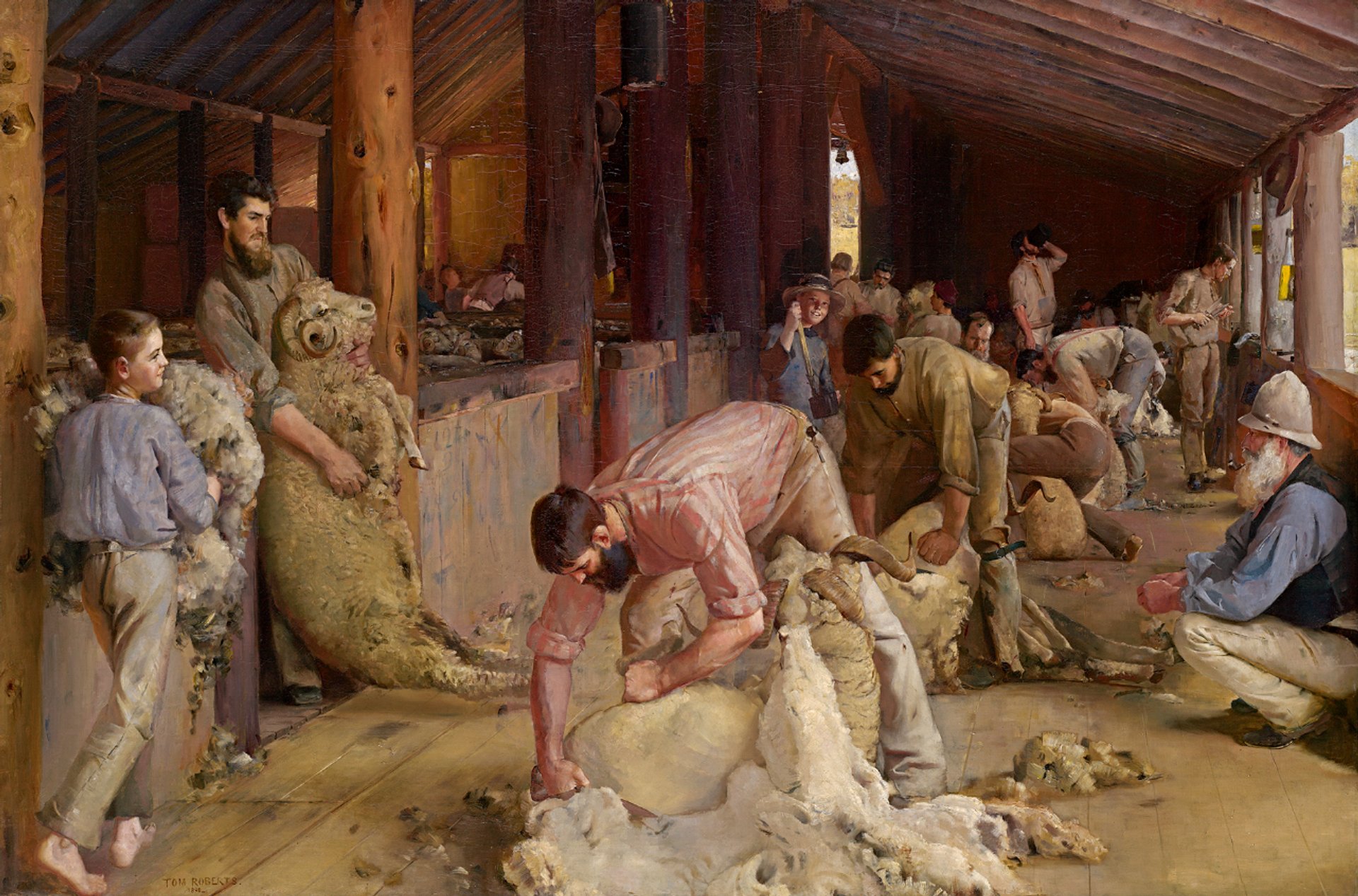 Tom Roberts’s Shearing the Rams (1890) Courtesy of the National Gallery of Victoria
