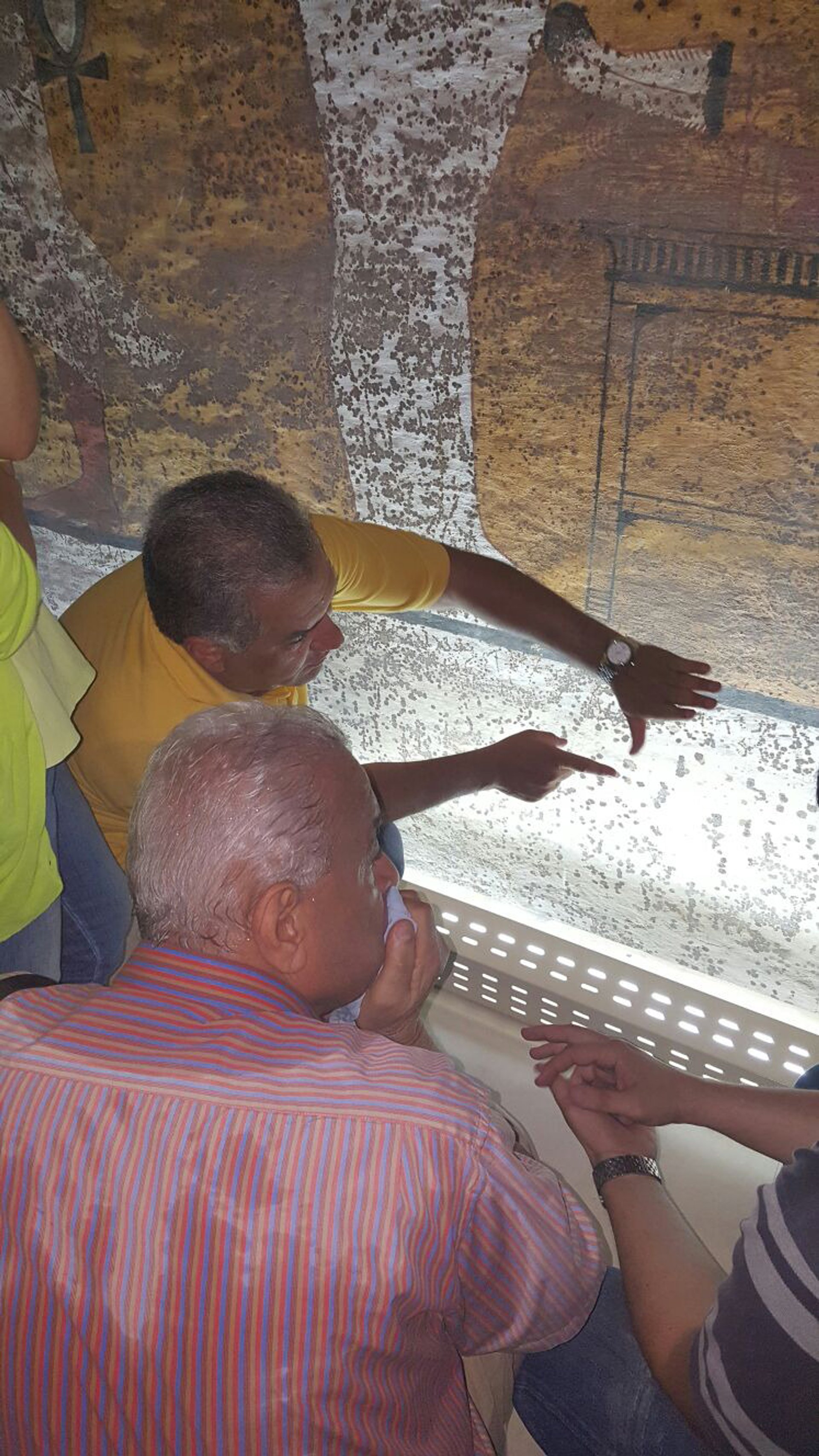A physical examination of the tomb walls by specialists, led by Egypt’s head of antiquities Mamdouh Eldamaty and the British archaeologist Nicholas Reeves, suggests that the ceiling continues behind its north wall, and that this may once have formed part of a corridor.