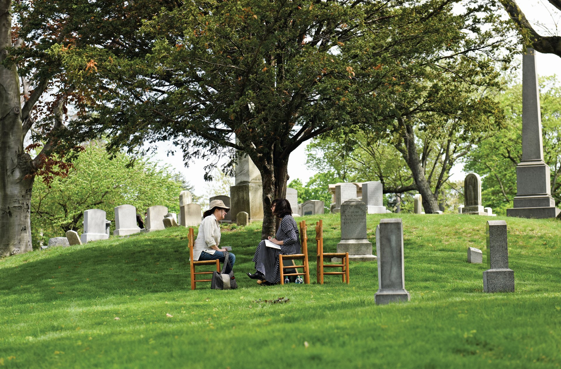 Deathbed confessions with Sophie Calle Ah, Brooklyn: where even the graveyards are hip. The borough’s buzziest spot last Saturday was the 19th-century Green-Wood Cemetery, where the French artist Sophie Calle was transcribing people’s darkest secrets to bury in her new Creative Time commission, a marble funerary monument called Here Lie the Secrets of the Visitors of Green-Wood Cemetery. As crowds queued amid the cherry blossoms, we asked the artist: what is the difference between a secret and a confession? “This is something I’ve wondered myself, throughout the day,” Calle admitted. “A secret is something that you can be proud of, though, because it makes you different from everyone else.” Had Nato Thompson, Creative Time’s artistic director, shared a secret with Calle? “No way, man; it’s different for me. I know her,” he said. “Strangers, they can just go up to her and be like, ‘I killed four people. Peace!’” So, what is Thompson hiding?