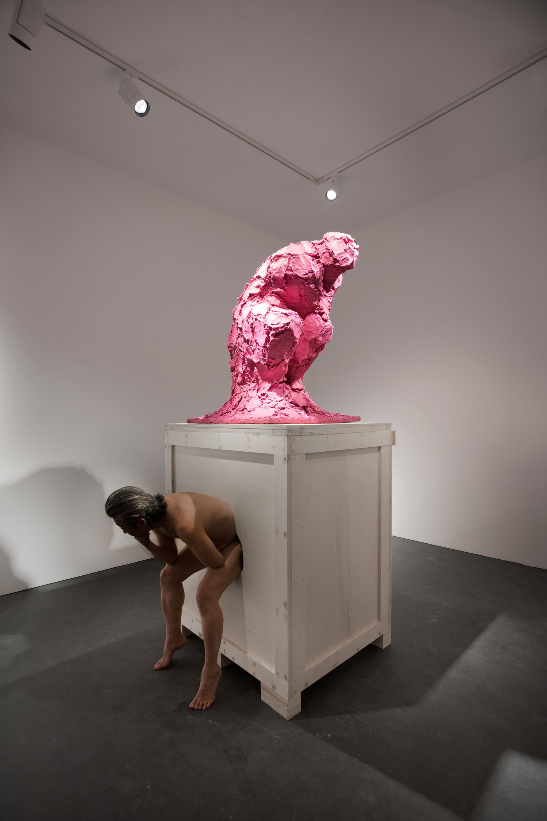 Peep shows and free orgasms are on offer at the Korean pavilion courtesy of Cody Choi who is advertising these dubious treats on the façade of the Giardini building as part of his Las Vegas-style work Venetian Rhapsody (2017). Choi has said that Venice is no different from other tourist hot spots such as Las Vegas and Macau, highlighting the “power and capital” of La Serenissima. His bright pink re-make of Rodin’s The Thinker, crafted from toilet paper, is a startling art historical re-configuration (The Thinker, 1995-6). Lee Wan’s Proper Time installation (2017) comprising 600 clocks soberly charts how long individuals worldwide must work in order to purchase a meal.