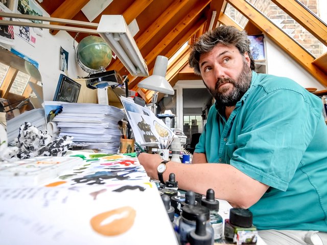 Bell, who graduated in fine art from Leeds University in 1974, often draws on his knowledge of art history. In May, he highlighted the Covid-19 crisis engulfing care homes in the UK, resulting in more than 20,000 deaths, by creating a cartoon showing an isolated fortress-style building in the middle of the ocean. A deathly figure reminiscent of Charon, the mythological ferryman of the dead, carries the coronavirus in his boat.