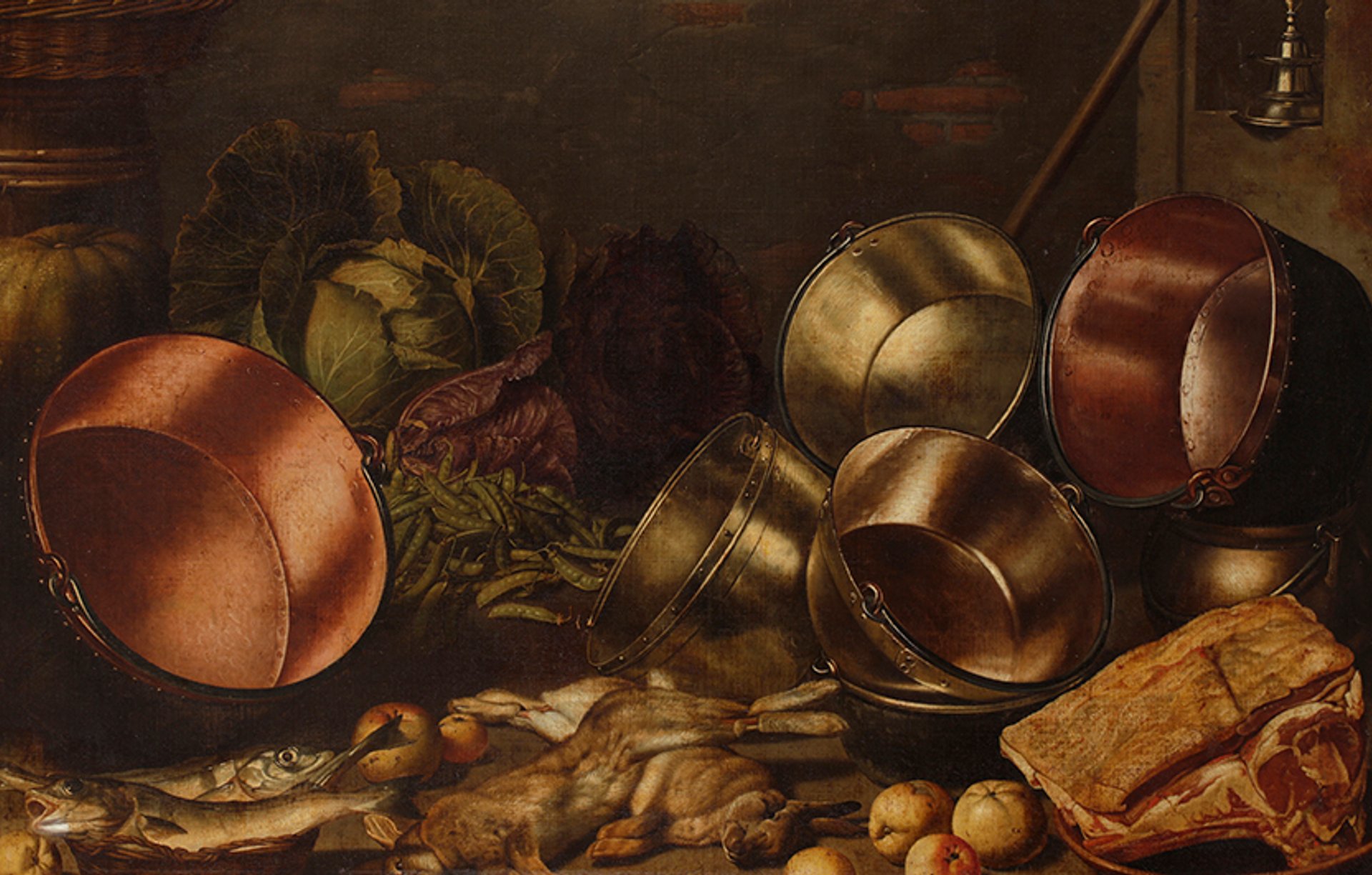 Victoria Avery, the keeper of applied arts at the Fitzwilliam and the joint curator of the exhibition, commented that the heap of autumn ingredients including fish and meat, pumpkins, cabbage and peas, also documents the range of produce available in 17th-century Haarlem, and the cooking methods used, while the well scrubbed pots testify to more than just the hard work of the kitchen staff. “All of them have sparkling insides but only some of them have shiny outsides, which reveals that they were used for different kinds of cooking over different kinds of fuel," she says. "Those pots with shiny outsides must have been used for making preserves or other food that required precise temperature control over charcoal. While the blackened pots were for cooking meat or vegetables over an open wood fire, she explained: “Burning charcoal releases carbon monoxide that reduces any oxides or other stains on copper leaving a pan’s surface remarkably clean and shiny.”
