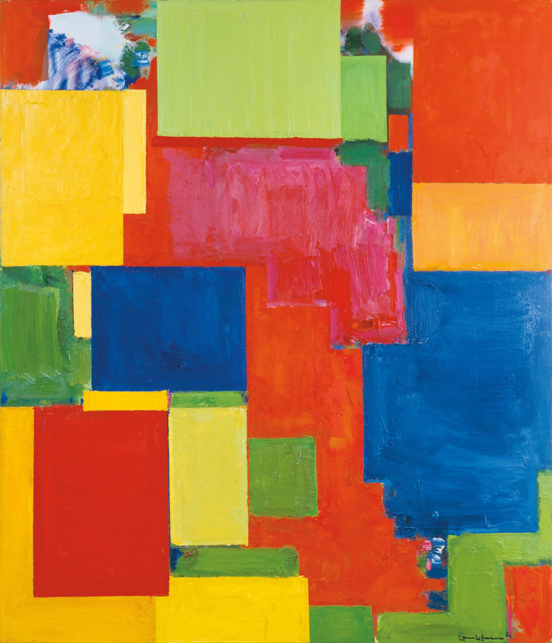 Hofmann’s reputation as a theoretician and pedagogue counted against him at a time when Action Painting principles required (often spurious) spontaneity and drama. His art was omitted from a number of important museum exhibitions of Abstract Expressionism, perhaps seeming to curators too diverse and perhaps a touch too European. Although Hofmann had his first American solo exhibition in 1944, he did not paint full time until his retirement from teaching in 1958. Since the artist’s death in 1966, the work has been undergoing a slow reappraisal, with his practice being appreciated for its originality.