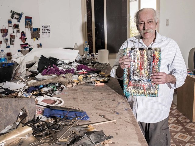 The contents of Hassan Sharif’s studio—on show in a retrospective of the late Dubai-born polymath’s works at the Sharjah Art Foundation (I am the Single Work Artist, until 3 February 2018)—throw new light on the personal and professional aspects of the artist’s life. The materials used by the man dubbed the godfather of conceptual art in the Gulf, as well as documents and unfinished works, all come from the atelier in his house in Al Barsha, Dubai. The items were donated to Sharjah Art Foundation by the Sharif’s estate after he died in September last year.