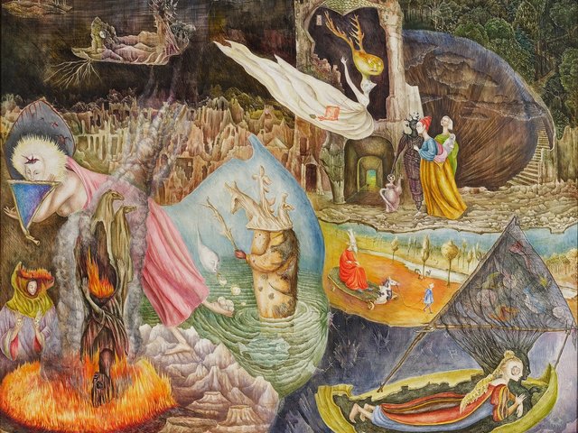 The Milk of Dreams, published in 2013, and illustrated with the drawings Leonora created to accompany her tales, was seized upon by the organiser of the Biennale, Cecilia Alemani, who said the book detailed “a magical world where life is constantly re-envisioned through the prism of the imagination, and where everyone can change, be transformed, become something and someone else”. Alemani has highlighted the interconnectedness of everything as a fundamental theme for so many of the issues of the current moment—and this, as well as ecology, feminism, and spiritual meaning outside of organised religion—is one of the transcending themes of Leonora’s work, both her writing and her art.