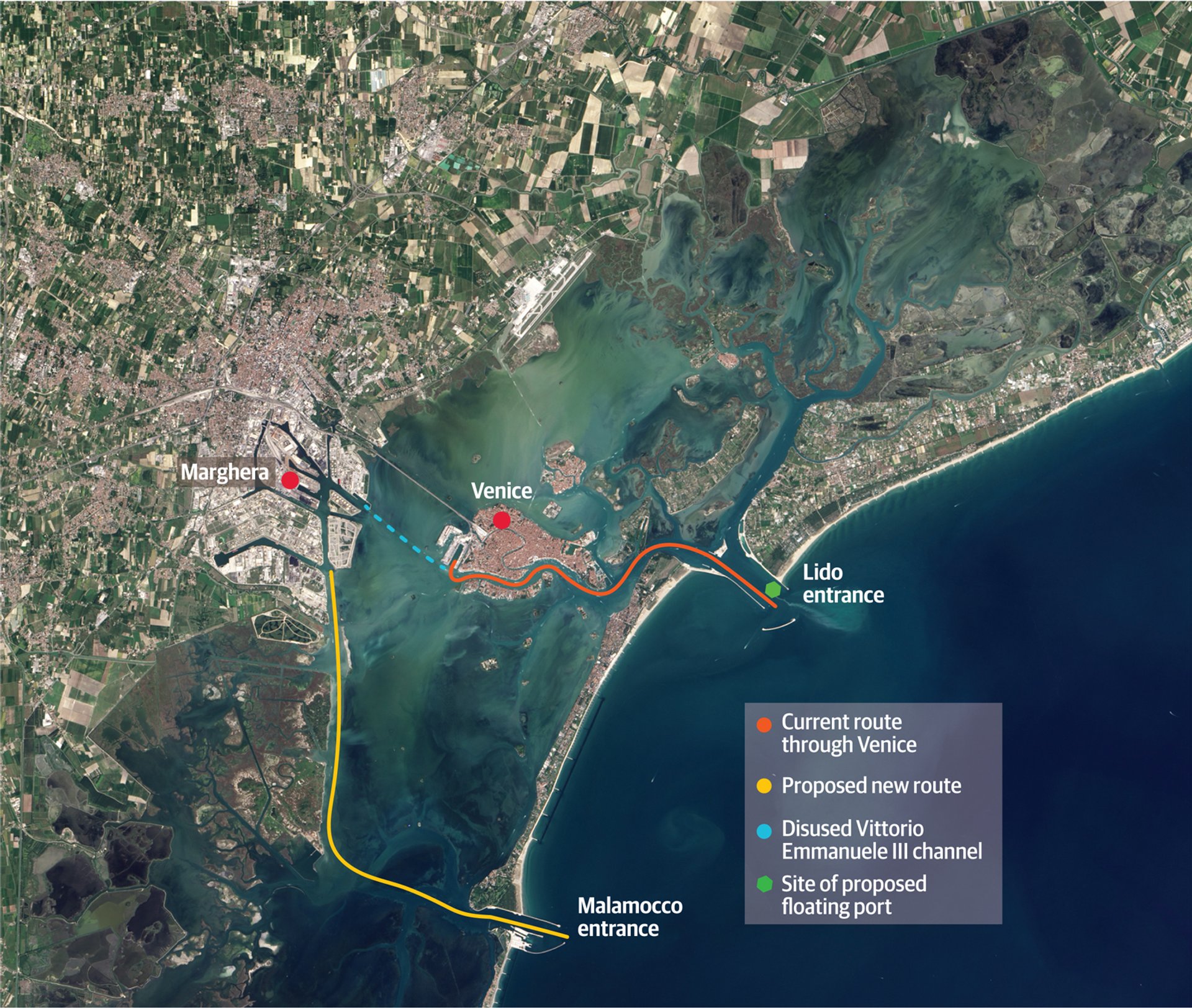 The main reason for this is that the proposed solution sacrifices the ecology of the lagoon and potentially, therefore, the physical future of Venice itself to the short-term interests of the port in Venice, which is run by a company Venezia Terminal Passeggeri SpA, in which powerful local and international interests, including the Veneto region, cruise ship companies and the world’s biggest cruise port operators, Global Ports Holding, have shares (see box).