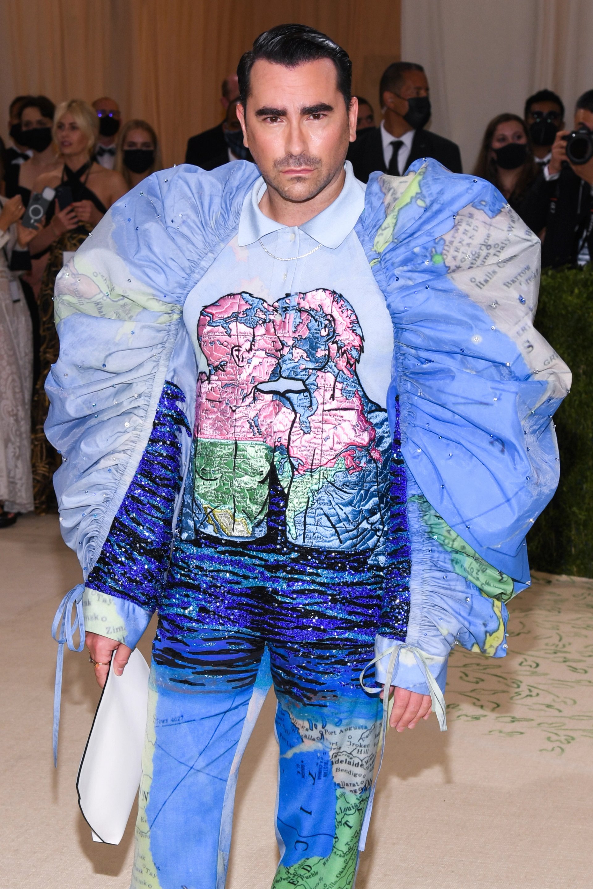Dan Levy walking on the red carpet at the 2021 Metropolitan Museum of Art Costume Institute Gala celebrating the opening of the exhibition titled In America: A Lexicon of Fashion held at the Metropolitan Museum of Art in New York, NY on September 13, 2021 Photo: Anthony Behar/Sipa USA
