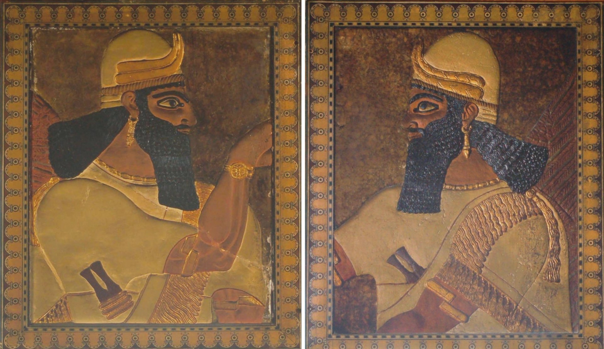 The panels were excavated by Austen Layard and were acquired in Baghdad in 1856 by the 9th Marquess of Lothian. He installed them in Newbattle Abbey, his 16th-century mansion in Dalkeith, ten miles southeast of Edinburgh. Some years later they were painted, to reflect how Victorian archaeologists believed they would have originally been decorated. They were then framed and set into the walls at the entrance to the mansion’s crypt.