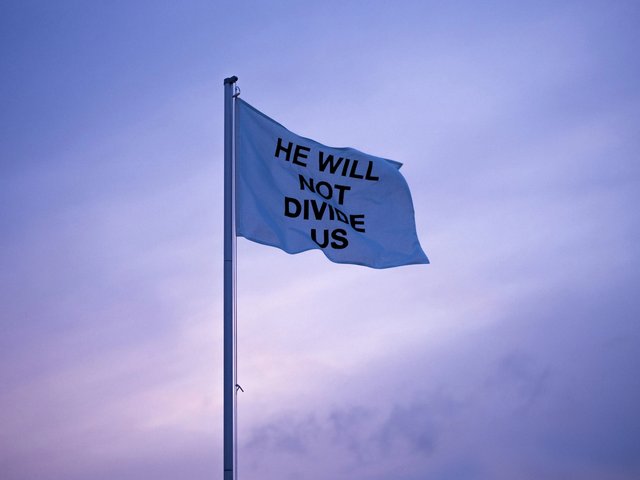 Four years after being stolen by white nationalists in Tennessee, a flag work bearing the words He Will Not Divide Us, a protest of Donald Trump’s presidency by Luke Turner, has been recovered by the FBI and returned to the British artist.