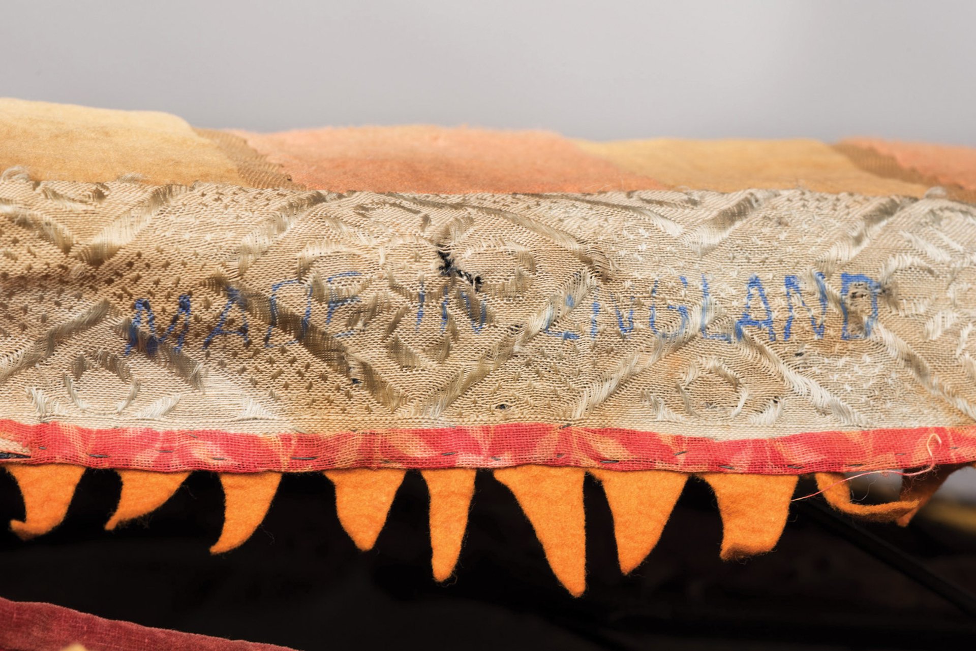 Detail of a strip of fabric made in England that is part of the egúngún costume at the Brooklyn Museum © Brooklyn Museum