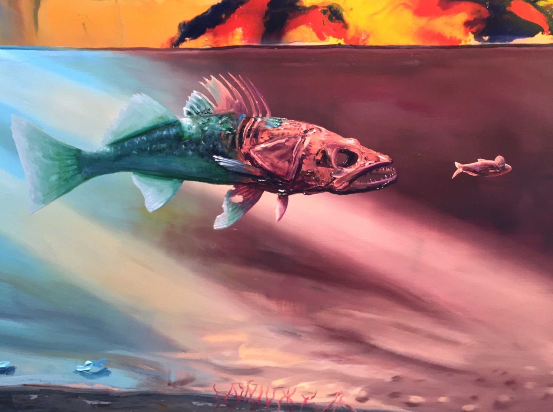 Alexis Rockman's murals for the Great Lakes Science Center in Cleveland shows a half-dead Blue Pike, a subspecies of wall-eye that was once endemic to the Great Lakes region but has not been seen there since 1983