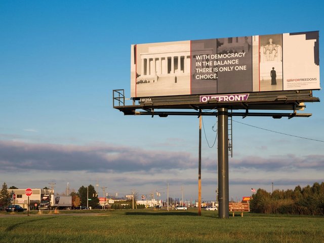 Alongside the somber classroom, the exhibition included a phone booth where visitors could call their Congressional representatives and a mural painted by artist Manuel Oliver in honor of his son Joaquin, who admired Wade and, after being killed at Stoneman, was buried in his basketball jersey. Visitors could write their own messages on the wall around a portrait of Joaquin and the big, blocky text accompanying it: “We Demand a Change”. Oliver told the New York Times the mural was his first creation as a “graphic activist”.