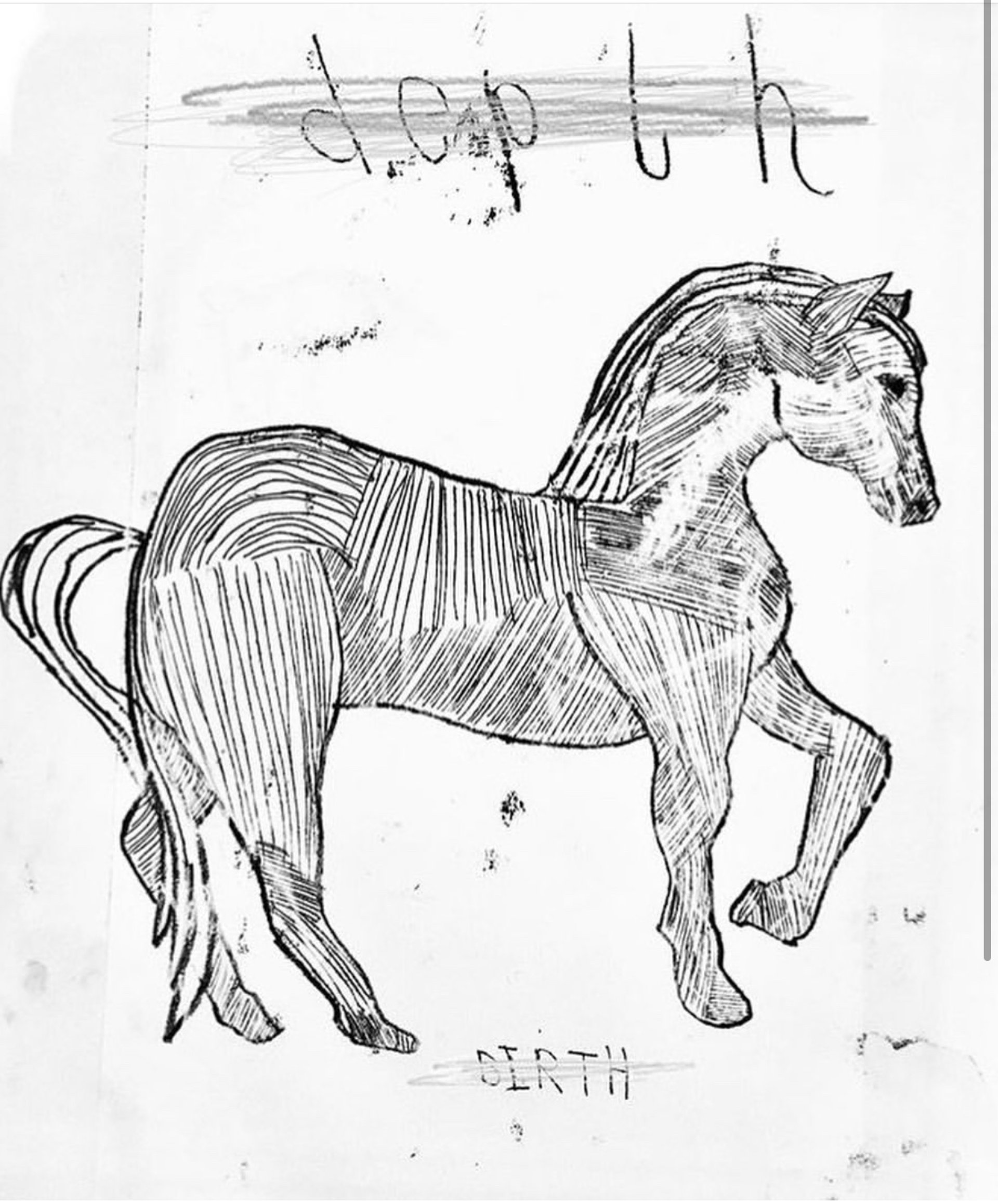 Colden Drystone’s Portrait of a Dream as a Mono-printed Horse (2020), which was sold via Instagram as part of the #ArtistSupportPledge initiative
