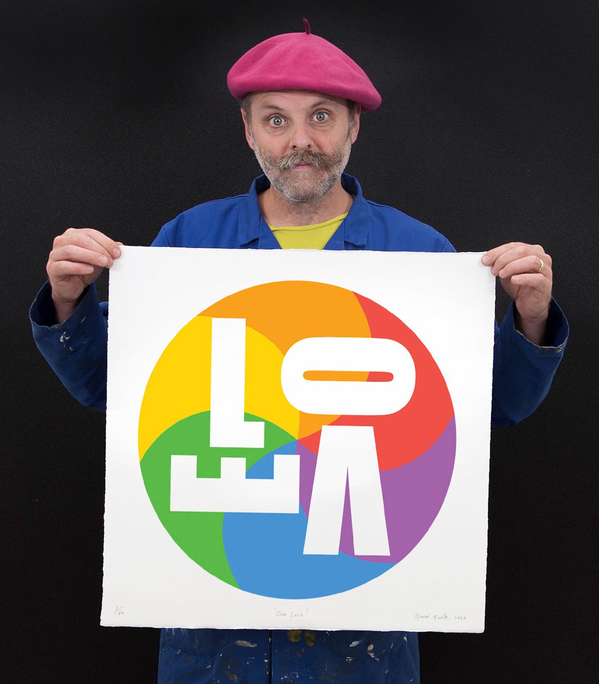 Gavin Turk holding One Love (2020)