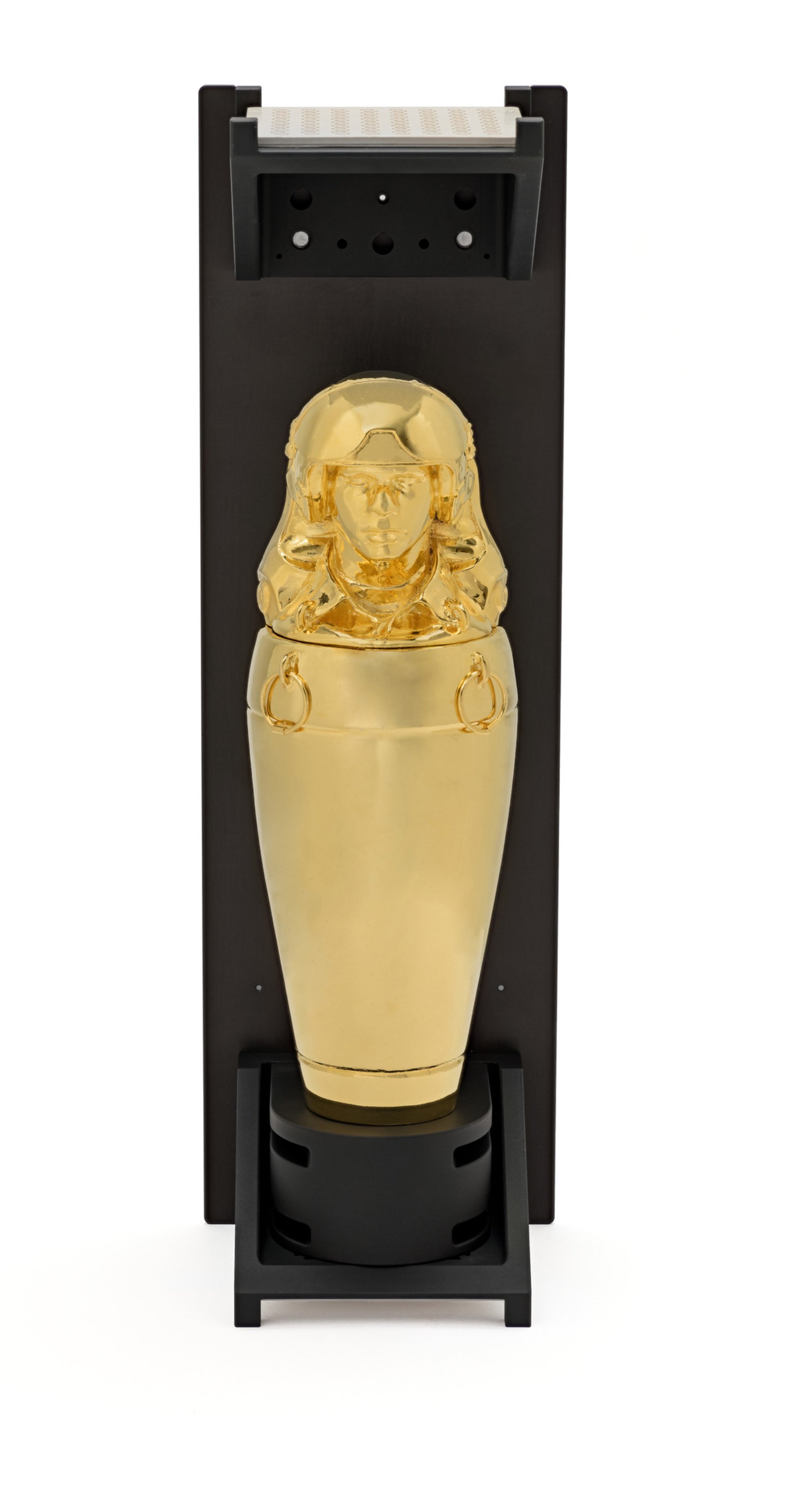Tavares Strachan's space art project, a 24-carat gold Egyptian-inspired jar topped by a bust Spaceflight Industries
