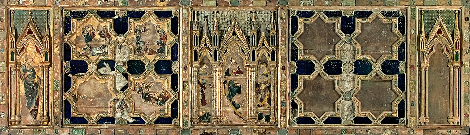 Originally designed for the abbey’s high altar, the retable dates from 1269, making it one of the earliest English painted panels. It was later replaced and was only rediscovered in the 18th century, when the wood was being used as the top of a cupboard. Throughout the 20th century, it was on view in the south ambulatory. The retable underwent extensive conservation from 1998 to 2005 and was displayed in the old museum on its return.