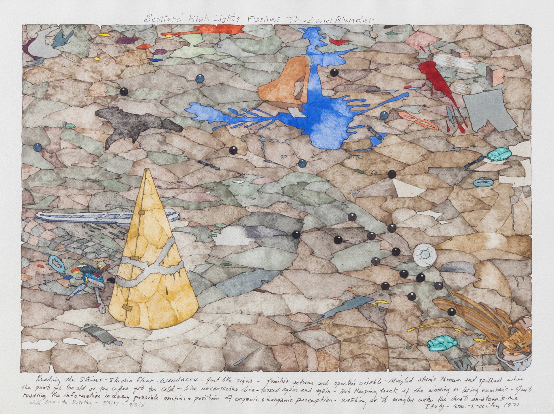 William T. Wiley's Reading the Stains (1970) © William T. Wiley, courtesy of Parker Gallery and Hosfelt Gallery