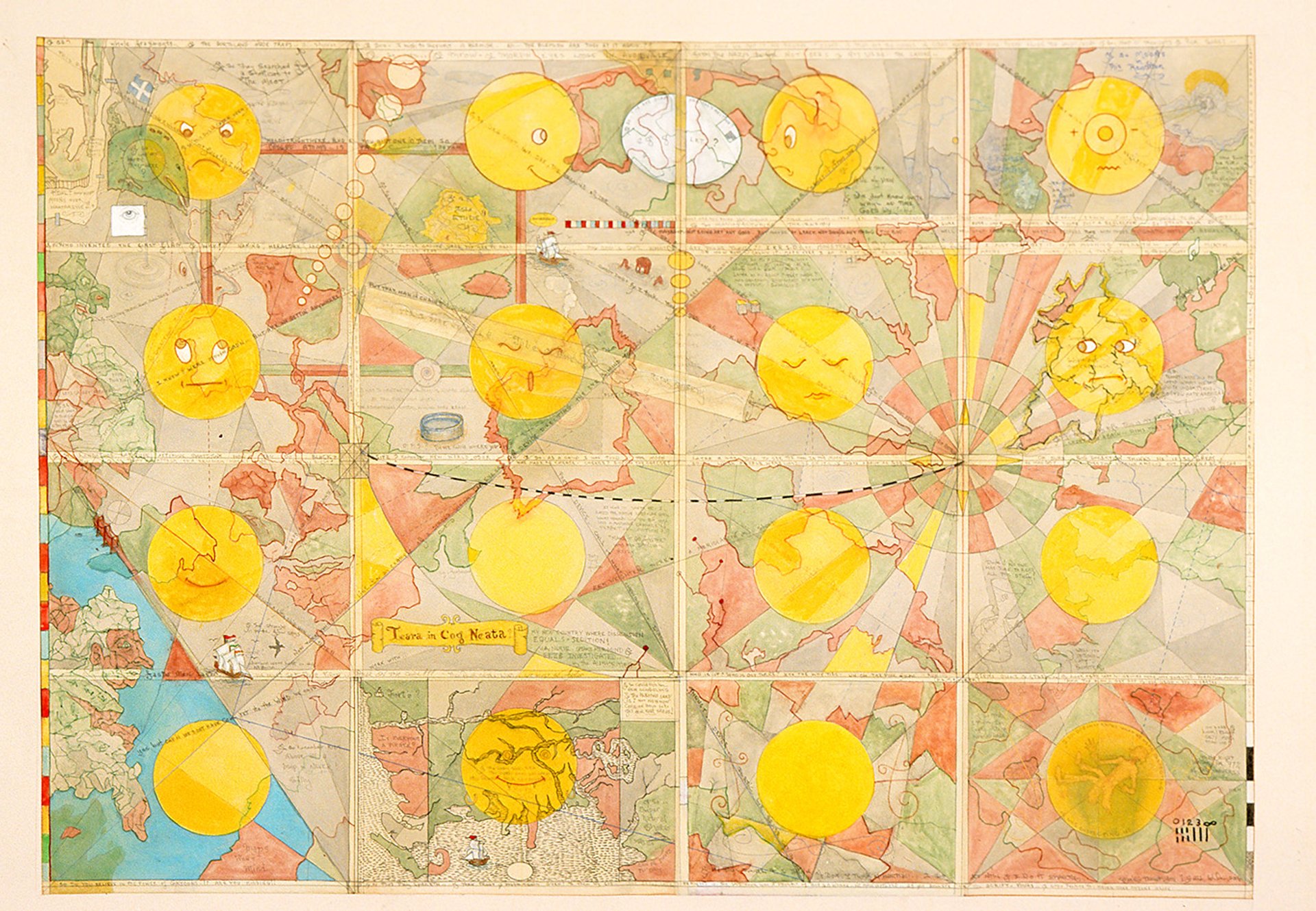 William T. Wiley's Meridian Moons Overwhatarewe, an acrylic on canvas, 2006 © William T. Wiley, courtesy of Parker Gallery and Hosfelt Gallery