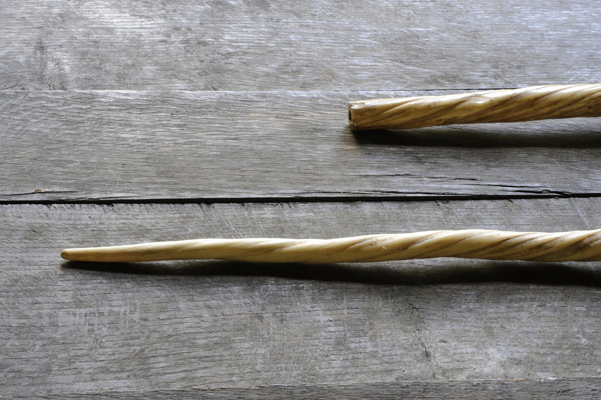 Two "unicorn" horns, which are actually narwhal tusks from the 13th–15th century © New College, University of Oxford