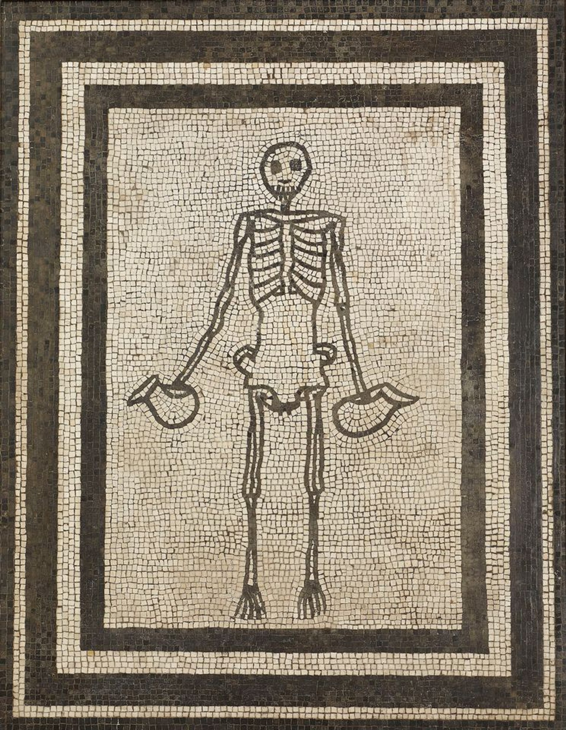 A monochrome mosaic panel (AD 1–50) from Pompeii’s House of the Vestals © Museo Archeologico Nazionale di Napoli