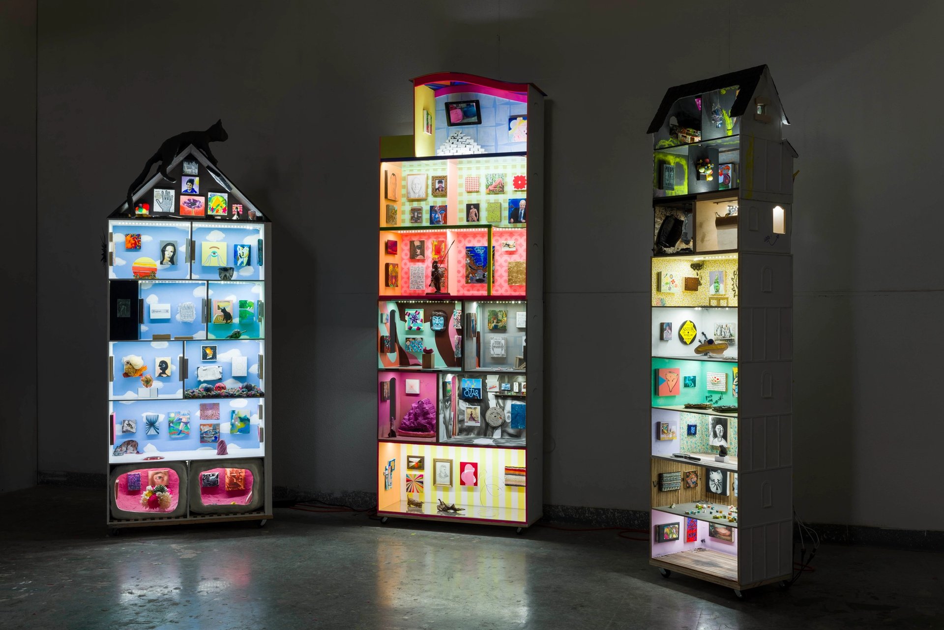 Adventurous and thought-provoking but remarkably free of big artistic statements and the attendant egos, an exhibition at the artist-run project space Serious Topics in Los Angeles might be the antidote to the international biennial surveys opening next month. The artists who organised the show, Kristin Calabrese, Joshua Aster and Torie Zalben, call it Dreamhouse vs Punk House (Plus Cat House). Very few of the nearly 200 miniature paintings and sculptures included measure more than 5 by 5 inches and most are significantly smaller—beautifully installed in three hand-built, high-rise dollhouses, each with its own character.