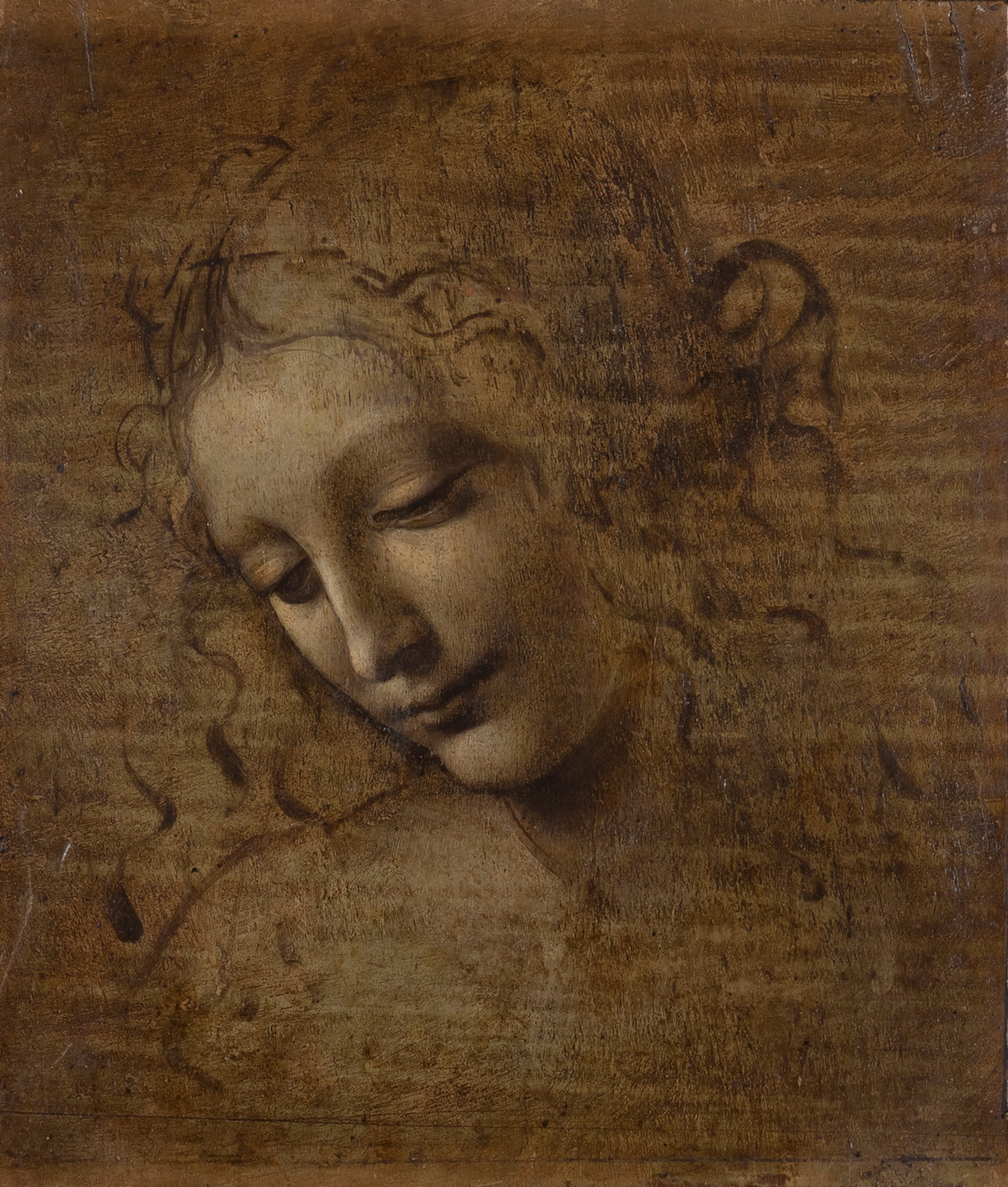 Head of a Woman (La Scapigliata), dated 1500-05, is an unfinished brush drawing with some pigment Licensed by Ministero dei Beni e delle Attività Culturali, Complesso Monumentale della Pilotta-Galleria Nazionale