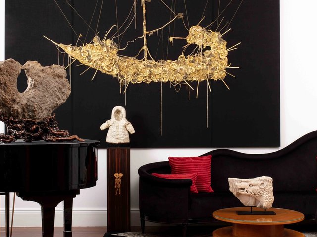 This is one of only four known textiles produced from the silk of golden orb-weaver spiders (Nephila Madagascariensis)—and three of them (two shawls and a lambda) are included in this exhibition of natural wonders at Oliver Hoare. The laborious process of making them is mind-boggling—it has taken the textile designer Simon Peers and entrepreneur Nicholas Godley almost 20 years of work, leading a team that harvested the silk of more than two million spiders. They spent 15 years researching 18th- and 19th-century methods, designed equipment to extract the silk, then embarked on eight years of production, employing a team of 80 people to search the Madagascan highlands every morning for spiders (which were returned unharmed), 24 of which were harnessed together for the silking process. The silk was then woven into the textiles on handlooms. The textiles have been shown at the American Museum of Natural History (2009), the Art Institute of Chicago (2011), and the Victoria and Albert Museum, London (2012).